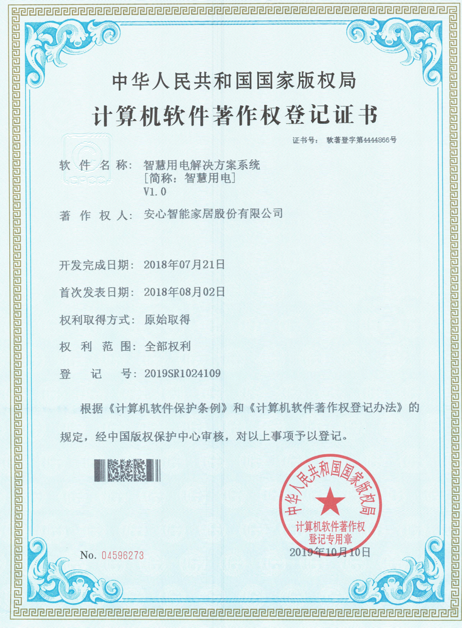 - 計算機軟件著作權登記證書